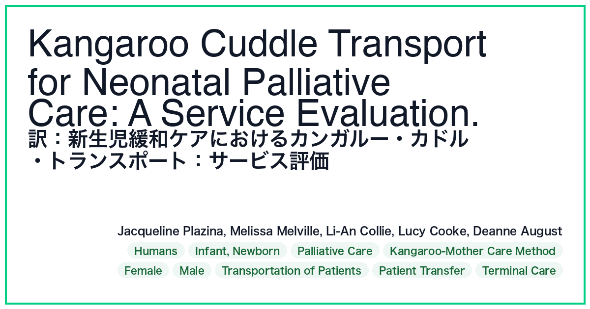 | タイトル(原文) | Kangaroo Cuddle Transport for Neonatal Palliative Care: A Service Evaluation. |