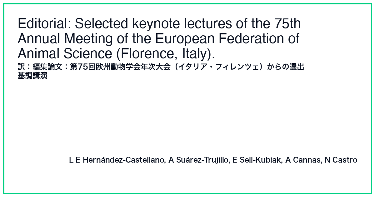 | タイトル(原文) | Editorial: Selected keynote lectures of the 75th Annual Meeting of the European Federation of Animal Science (Florence, Italy). |