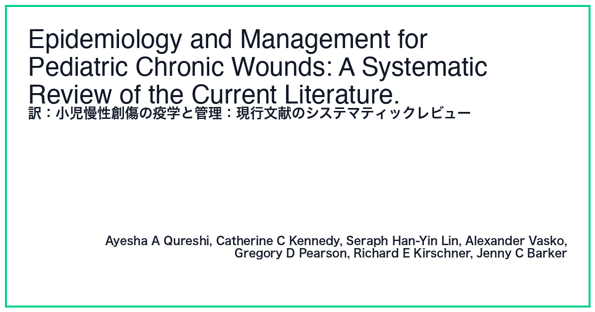 タイトル(原文) Epidemiology and Management for Pediatric Chronic Wounds: A Systematic Review of the Current Literature.