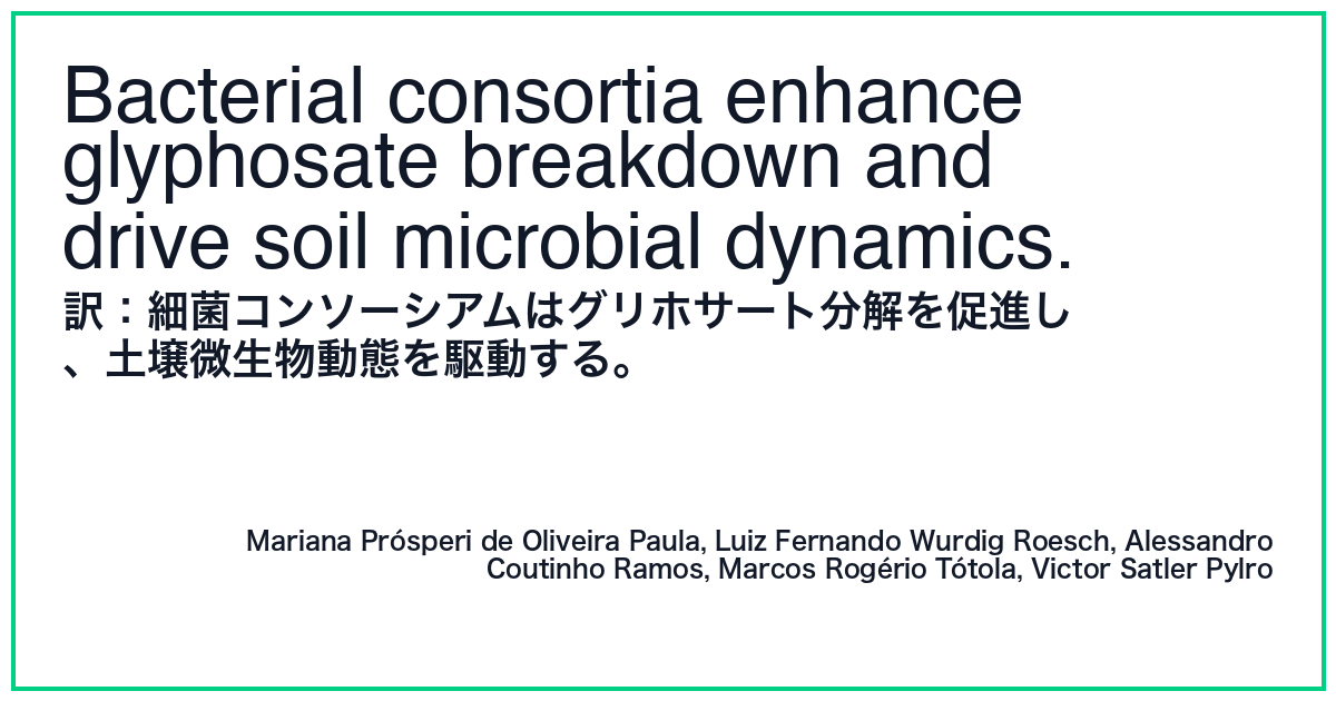 タイトル(原文) Bacterial consortia enhance glyphosate breakdown and drive soil microbial dynamics.
