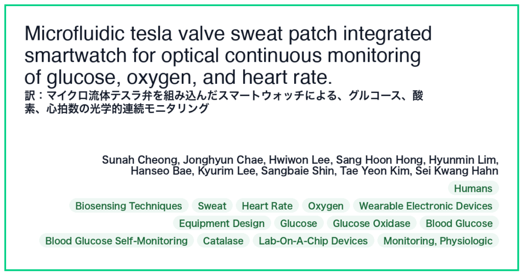 マイクロ流体テスラ弁を組み込んだスマートウォッチによる、グルコース、酸素、心拍数の光学的連続モニタリング (PMID:40889468)