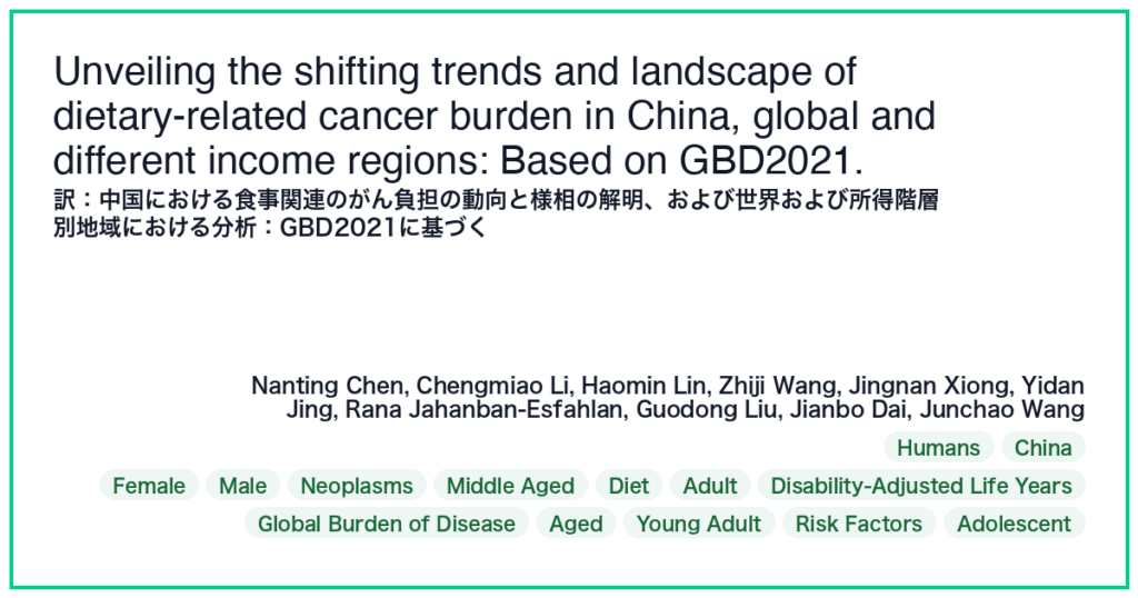 中国における食事関連のがん負担の動向と様相の解明、および世界および所得階層別地域における分析:GBD2021に基づく (PMID:40902367)